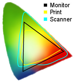 It means there is no such thing as "what you see is what you get" because it is simply impossible to render every monitor color on a printer. Color Management gets around this as follows. Each color gamut is mathematically related to a common reference color space. This common reference space allows devices to talk to each other in a common color language, so any device color space can be converted to any other via the common reference space. The conversion uses information from the device profile. In Windows the reference color space goes by the name sRGB and its gamut is similar to the monitor gamut. The conversion from device to reference color space is done by squishing or deforming the device gamut (officially called gamut mapping). There are a number of ways to do this squishing and how it is done is controlled by the Rendering Intent. The effect of all this is to hide the mismatch between the colors that can be displayed on a monitor and a printer. It does not, however, result in _exactly_ the same colors being displayed. As a result, Color Management helps you get better agreement between screen and print but is not a magic bullet that "makes color always come out the same everywhere". I need more. Windows Color Management http://www.microsoft.com/hwdev/devdes/icmwp.htm http://www.microsoft.com/HWDEV/color/default.htm More about sRGB http://www.srgb.com/ More about device profiles http://www.color.org/ |