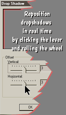 Mouse wheels are ultra-friendly with the Tool Options & many other PSP dialogs. Nearly everywhere we find dials, levers or numeral entry fields --> we have the ability to "wheel roll shop" through all those settings. Roll wheels to fine-tune numerals one increment at a time; to custom fit brushes; and to spend more productive time on your images and less time in those palettes & dialogs.