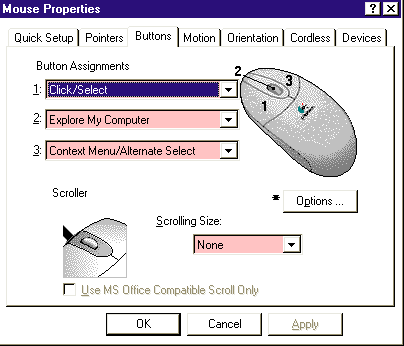 Most fields respond to a single click to activate, however several (generally associated with scroll lists) require the double click. Double clicking will always work on everything. It may be easier to initially just double-click everybody, until your wheel shopping/clicking habits are committed to memory. The natural progression of usage eventually shows us which guys honestly require double clicks versus those other guys (the majority) who will activate on a single click. Finding an easy way to develop your "mouse wheel shopper habit" is the only goal. Use any click method, that suits your style. |